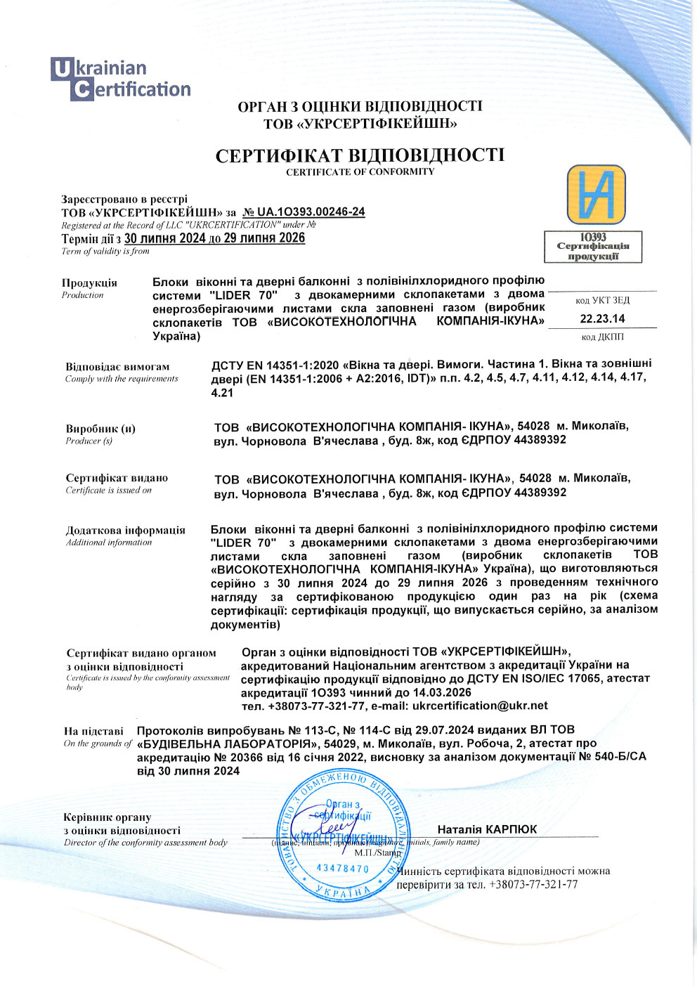 ТОВ Високотехнологічна компанія "Ікуна" - ЕДРПОУ: 44389392,